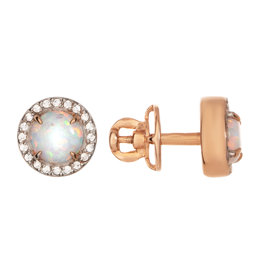 Вставки: 2шт опал белый синт круг кабошон 6мм, 40шт фианит бесцв круг грань 0,9мм